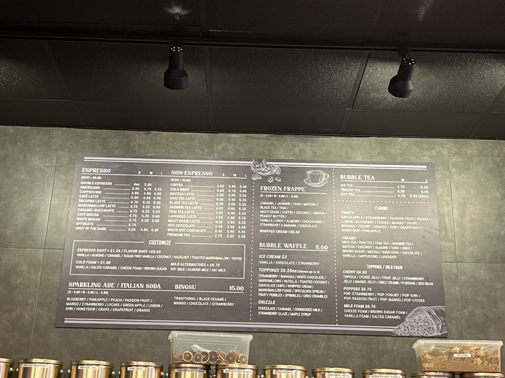 The menu is a vibrant mix of refreshing drinks and delectable treats. Their Sparkling Ades are a refreshing choice at just $5.50, available in flavors like Peach and Kiwi. For coffee lovers, the Espresso section features indulgent options like the rich Caramel Macchiato and creamy Cappuccino starting from $4.45. Notably, their signature Bubble Waffles, praised for their crispy exterior and fluffy interior, are a must-try dessert, perfect for sharing or indulging solo.